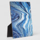 A variety of blues and white play and swim together to create a vibrant composition. Fluid art is remarkably three-dimensional; all of the colors layer and intermingle to create a one-of-a-kind piece of modern art.