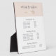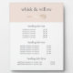 Affichez votre liste de prix de produits ou de services avec cette plaque moderne qui est parfaite pour les boulangeries ou les traiteurs. Design propose un faux fouet de feuille d'or en haut, avec votre nom d'entreprise en lettres grises douces sur un arrière - plan rose pastel. Utilisez les six champs modèles pour ajouter vos prix ou informations de service. Utilisez la fonction Personnaliser pour repositionner, redimensionner ou modifier au besoin.