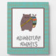 L'adorable art numérique présente Boho Bear avec son carquois coloré de flèches, le texte "Adventure Awaits" et l'arrière - plan arlequin turquoise en détresse