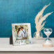 Plaque photo avec un design chic boho moderne en bleu et or poussiéreux avec votre photo personnalisée. Un beau souvenir pour un fiançailles, un mariage ou un anniversaire et personnalisable pour d'autres situations.
