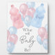 Ce genre de bébé révèle signe de fête comporte un thème rose et bleu pastel mignon. Un biberon rose est placé sur la gauche avec "girl?" imprimé dans une police de caractères élégante. Un biberon bleu doux est placé sur la droite avec "garçon?" imprimé sur le dessus. Les ballons de soirée rose et bleu accentuent les frontières de l'invitation. La question "Qu'est-ce que le bébé sera ?" est imprimée au centre. Vous pouvez demander aux invités de votre sexe de révéler essayer de deviner si votre nouveau bébé sera un garçon ou une fille.