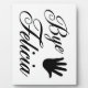 Une écriture cursive qui dit, BYE FELICIA. Avec une main qui vous agite.