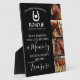 Plaque d'hommage élégante pour cheval avec un fond noir simple, un collage de 4 photos du cheval que vous commémorez, une citation de condoléances qui dit "quand quelqu'un que vous aimez devient un souvenir, ces souvenirs deviennent un trésor", un fer à cheval avec un cœur, le nom de votre cheval et leurs dates de naissance et de décès. Cette plaque commémorative moderne pour animaux est facile à personnaliser et constitue le souvenir idéal pour vous, votre famille ou vos amis pour honorer ces chevaux spéciaux qui ne sont plus parmi nous.