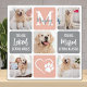 Célébrez votre meilleur ami avec une plaque de photo collage personnalisée en mémoire de votre animal de compagnie dans un design moderne de blocs de couleur gris et rose pêche. Cette plaque photo unique en mémoire de votre chien est le cadeau parfait pour vous-même, votre famille ou vos amis pour honorer ceux qui sont chers.