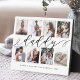 Envoyez un beau cadeau personnalisé à votre père qu'il chérira pour toujours. Plaque de collage photo de famille de fêtes des pères personnalisées spéciales pour afficher vos propres photos et souvenirs de famille spéciaux. Notre design est composé d'un montage photo simple de 8 avec "daddy" conçu dans un style de script noir écrit à la main. Chaque photo est encadrée d'une simple bordure décalée de couleur or. Customisez avec les noms des membres de la famille.