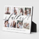 Envoyez un beau cadeau personnalisé à votre père qu'il chérira pour toujours. Plaque de collage photo de famille de fêtes des pères personnalisées spéciales pour afficher vos propres photos et souvenirs de famille spéciaux. Notre design est composé d'un montage photo simple de 8 avec "père" conçu dans un style de script noir écrit à la main. Chaque photo est encadrée d'une simple bordure décalée de couleur or. Customisez avec les noms des membres de la famille.