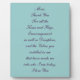 Plaque de la Fête des Mères avec poème qui dit "Maman, Merci pour tous les baisers et les câlins, l'encouragement ainsi que la discipline, et les valeurs que vous avez inculquées en moi qui m'ont fait entrer dans ce que je suis aujourd'hui. Je t'aime. "