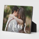 Ce charmant présentoir de photo de table est équipé d'un chevalet intégré pour une exposition sans cadre de votre photo préférée. Il comporte le mot FOREVER dans une belle écriture blanche, vos noms et la date de votre mariage. Créez un souvenir de votre photo préférée ou offrez-le en cadeau.