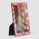 Amour ! Romance ! Saint valentin! Ce design amoureux et numériquement est une façon fabuleuse de célébrer cette fête la plus romantique - la Saint-Valentin. Beau, les coeurs en rouge et rose et blanc donnent un aspect légèrement dimensionnel et textuel à cette merveilleuse plaque photo. Le coeur rouge du centre supérieur peut être enlevé ou simplement déplacé à un autre endroit pour s'adapter à votre photo spécifique — qui remplace la photo verticale de 5" x 7" présentée ici. Enfin, n'oubliez pas de changer les noms "Jennifer & Joseph" qui sont donnés — les noms ou votre message spécial. La beauté de cette plaque photo est qu'il n'y a pas de verre à casser et il est résilient et durable. Cela fait un fabuleux cadeau d'anniversaire de mariage ou de mariage (avec la photo spéciale du couple) aussi.
