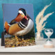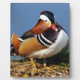 Plaque Photo Canard mandarin mâle sur la rive de l'étang