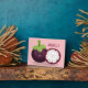 Ce mignon mangouste mauve est dessiné dans un style d'illustration de dessin animé amusant. Beaucoup de fruits tropicaux amusants !