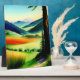 La plaque de la tablette est ornée d'une prairie de montagne aquarelle avec un arbre et un sentier à l'avant-plan. Une peinture numérique créée à l'aide d'un logiciel d'IA.