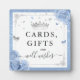 Créez vos propres panneaux de dessus élégants pour les cartes, les cadeaux et les voeux pour une soirée à thème bleu clair et argent. L'aquarelle florale de Raphaela Wilson représente de jolis roses bleus de bébé aux accents faux métalliques argentés. Une princesse royale tiara / couronne peut être vue au sommet avec des papillons confettis de parties scintillant étincelante, le tout est entouré d'une luxueuse frontière de fée. Ces panneaux vintages de conte de fées faciles ont un stand pour un simple placement de table. Personnalisez-les facilement avec n'importe quel texte personnalisé - plus n'hésitez pas à modifier le script de calligraphie moderne et d'autres polices pour une typographie qui convient à votre style. Ces do-it-yourself panneaux de table modèles peuvent fonctionner très bien pour les mariages de Cendrillon, un coing hivernal au pays des merveilles, une douce fête de 16 ans, un baby shower de princesse, entre autres occasions précieuses. Placez-les sur la table à côté de la boîte cadeau, et vos invités d'arrivée sauront exactement où mettre leurs cartes, cadeaux et bons voeux. Petites ou grandes, les dimensions de ces panneaux de table faciles à carré sont réglables. Catégorie : Cartes de quinceanera et signes cadeaux avec piédestal; signes de mariage élégants pour les cadeaux et les cartes; et signes mariages papillon / faveurs. Couleurs de soirée à thème argent et bleu bébé : bleu pâle poussiéreux pastel, gris clair, gris foncé doux, argent et blanc.