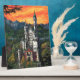 Château Schloss Neuschwanstein des gravures, des affiches, des cadeaux et des accessoires présentent notre art original de Traci Van Wagoner du célèbre palais de la renaissance gothique du XIXe siècle, assis sur une colline accidentée au-dessus du village de Hohenschwangau près de Füssen dans le sud-ouest de la Bavière, en Allemagne au coucher du soleil. Cette belle peinture de château est un cadeau parfait pour tous ceux qui aiment les châteaux, les palais, l'imaginaire et l'art coloré. Le palais est apparu en tête dans plusieurs films et a été l'inspiration pour le château de beauté dormante de Disneyland et plus tard, des structures similaires.