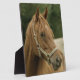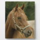 Cheval de châtaignier dans un champ avec un pré-jarret désordonné.