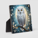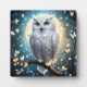 La Chouette Blanche À Neige Avec Éperceuse Se Trouve Devant Une Pleine lune Sur Une Branche D'Arbre.