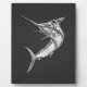 Un chrome argenté comme le poisson de marlin applique sur un décor arrière - plan de style fibre de carbone. Un cadeau marin moderne et osé. Une bonne idée cadeau ! Utilisez le lien "Demandez à ce concepteur" pour nous contacter avec vos demandes de design spécial ou pour obtenir de l'aide pour répondre à vos besoins de personnalisation.