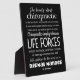 La citation du Dr B.J. Palmer : "La beauté de la chiropratique est le fait qu'elle fonctionne avec des moyens naturels. Il ne met rien de nouveau dans le corps, et il n'enlève aucune glande ou organe naturel. La chiropratique libère simplement les forces de vie dans le corps, libère des rivulets d'énergie sur les nerfs, et laisse la nature faire son travail de manière normale." dans une variété de typographie/polices. Idéal pour l'affichage dans les chambres de réglage ou pour la décoration de la réception.