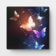 Night glowing butterflies on a dark abstract background. Du beurre noir. Design avec du beurre.