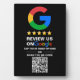 Une simple plaque noire personnalisée pour être unique une opportunité intelligente pour vous de demander à vos clients de laisser un avis Cinq étoiles pour votre boutique sur Google. Ajoutez vos détails, Tout le style de texte, les couleurs, Boost Your Google Présence en ligne Améliorez votre réputation en ligne et la visibilité sur Google. Plus d'évaluations signifie plus de confiance et de crédibilité pour votre entreprise.