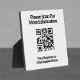 Code QR sur une plaque de comptoir à montrer aux clients. Le code QR s'affiche par exemple à la réception.
