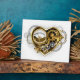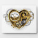 Coeur steampunk mécanique, volumétrique, avec manomètre, acier et or sur arrière - plan blanc. Style Steampunk.
