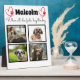 Célébrez votre meilleur ami avec un Collage Photo personnalisé. Quand vous avez tant de souvenirs et de photos amusants, une seule photo ne suffit pas. Cette plaque a 4 photos, une citation, et vous pouvez personnaliser le nom de votre animal de compagnie. Vous pouvez également modifier la couleur de l'empreinte de patte. Pour customiser, vous pouvez changer la couleur et la police, entrer votre propre devis, télécharger vos propres photos ou même changer la couleur arrière - plan. Que vous ayez un nouveau chiot, ou que vous vouliez juste commémorer tous vos moments spéciaux, chaque chien mérite une tenue de famille personnalisée.
