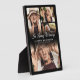 Plaque commémorative personnalisée avec un arrière - plan noir, 4 photos précieuses, le dicton "en mémoire d'amour", leur nom et leurs dates.
