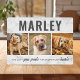 Réfléchissez aux beaux moments et aux liens éternels tissés avec votre animal de compagnie bien-aimé grâce à notre plaque commémorative personnalisée pour animaux. Cette pièce commémorative soigneusement conçue vous permet de revivre visuellement trois de vos souvenirs préférés avec votre ami à fourrure, élégamment mis en valeur et détaillés avec leur nom. Le sentiment sincère "Vous avez laissé des empreintes de pattes pour toujours dans nos cœurs" ajoute une touche apaisante de clôture et est un rappel spécial de l'amour et de la joie indéniables que votre animal a apportés dans votre vie.