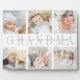 Créez un cadeau sucré pour grand-mère avec cette plaque de six collages photo. "GRANDMA" apparaît dans le centre en lettres gris chic, avec votre message personnalisé et les noms des petits-enfants superposés.