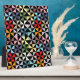 A pattern of geometric pinwheels form a quilt-like tapestry of color. Both moderne et vintage at the Solitime. Versatile and classic.