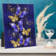 Composition des luxueux papillons saphir et bijoux en or sur arrière - plan bleu texturé.