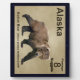 Un autre dans la série de timbres-poste pour une hypothétique nation indépendante de l'Alaska. Comprend une peinture numérique d'un ours Kodiak sur un parchemin neutre, ou vieux papier, arrière - plan. Le texte "Alaska", "Postage 8 Nuggets" et Kodiak Bear Ursus arctos middendorffi" apparaissent également. L'Ours de Kodiak (Ursus arctos middendorffi), une sous-espèce de l'ours brun, ou grizzli, est le plus grand ours du monde. Un mâle adulte peut mesurer plus de 10 mètres de haut lorsqu'il est debout sur ses pattes postérieures et peser plus de 1500 livres - un spectacle à voir. Un ours du zoo de Bismarck, dans le Dakota du Nord, aurait pesé jusqu'à 2 400 livres. Les ours vivent sur les îles de l'archipel Kodiak de l'Alaska. Aujourd'hui, il y a environ 3500 ours kodiak et leur nombre augmente en raison de l'état généralement excellent de leur habitat, y compris un poing suffisant pour se nourrir. Ils sont appelés "takuka-aq" en Alutiiq, la langue maternelle du peuple dans cette région. On pense que les ours y ont été isolés depuis la fin de la dernière ère glaciaire, il y a plus de 12 000 ans. Bien qu'ils soient le plus grand carnivore terrestre leur régime alimentaire comprend de grandes quantités d'herbe, d'autres plantes et des baies. Aujourd'hui, il y a environ 3500 ours kodiak et leur nombre augmente en raison de l'état généralement excellent de leur habitat, y compris un nombre suffisant de poissons à manger. En raison de l'abondance des ressources alimentaires, les ours Kodiak ont une aire de répartition plus petite que les autres ours bruns et n'ont pas besoin de défendre les territoires. Les Alutiiq chassaient les ours pour leur nourriture, leurs vêtements et leurs outils. Des flèches, des lances et beaucoup de courage étaient nécessaires pour la chasse. Les têtes d'ours étaient généralement laissées dans le champ comme un signe de respect de l'esprit des ours.