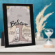 Petit garçon penche contre un arbre avec les mots CROIRE écrits en feuille. Il n'y a pas de manque de doute...C'est l'abondance de croyance qui est souvent négligée. Croyez en l'incroyable qui est VOUS ! ©Little Boy, Big Dreams, LLC et David A. Carrizales et artwork © Christie Black