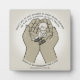 Little Boy est vu assis dans une paire de grandes mains, les mains de Dieu, en portant une paire de chaussures trop grandes pour ses pieds. La citation de David A. Carrizales illustrée ici par Christie Black est : "N’essayez pas de vous mettre à la place, mettons-nous tous dans les mains de Dieu".