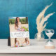Ce collage de graduation feuilleté design de faire-part photo avec des lauriers fleuris verts et un texte de script souple.