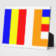 Le drapeau bouddhiste est un drapeau conçu à la fin du 19ème siècle pour symboliser et représenter universellement le bouddhisme. Il est utilisé par les bouddhistes du monde entier. Les six bandes verticales du drapeau représentent les six couleurs de l'aura que les bouddhistes croient émanée du corps du Bouddha lorsqu'il a atteint le Siècle des Lumières : Bleu (Nila) : Amour bonté, paix et compassion universelle Jaune (Pita) : Le Chemin moyen - éviter les extrêmes, vide Rouge (Lohita) : Les bénédictions de la pratique - réalisation, sagesse, vertu, fortune et dignité blanche (Odata) : Pureté du Dharma - menant à la libération, en dehors du temps ou de l'espace Orange (Manjesta) : Les enseignements du Bouddha - sagesse La sixième bande verticale, à la volée, est constituée d'une combinaison de bandes rectangulaires des cinq autres couleurs, et représente un composé des cinq autres couleurs dans le spectre de l'aura. Cette couleur composée est appelée Pabbhassara ("essence de la lumière"). Globe Trotters se spécialise dans l'imagerie idiosyncratique du monde entier. Vous y trouverez des Cartes de Voeux, Cartes Postales, Posters, Mousepads et plus encore.