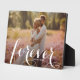 Cette plaque photo en forme de tablette possède un chevalet intégré pour l'affichage sans cadre de votre photo préférée. Comprend le mot FOREVER dans une belle écriture blanche, vos noms et date mariage. Créez un souvenir de votre photo préférée ou offrez-en des cadeaux.