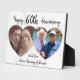 Plaque photo d'anniversaire de mariage élégante à effet marbre avec 2 photos en forme de cœur, un vœu d'anniversaire et l'expéditeur. Tous les styles, tailles et couleurs de police peuvent être modifiés en cliquant sur le lien 'personnaliser davantage' après la personnalisation.