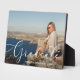 Votre photo préférée, le mot Graduate, votre nom et votre année de graduation en texte blanc élégant sur le devant, cette plaque photo sans cadre avec un chevalet intégré est un grand souvenir pour rappeler le jalon spécial de votre diplômé. Correspondance d'articles dans notre magasin.