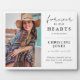 Élégante Plaque de Photo Funéraire de Mémoire. Le design présente le texte 'Toujours dans nos cœurs', une photo chérie de votre proche, leur nom, dates et une citation de sympathie. Tout cela peut être facilement personnalisé à l'aide du modèle fourni. Cette plaque de souvenir peut être exposée lors d'un enterrement, d'une cérémonie commémorative, d'une célébration de la vie ou simplement chez vous.