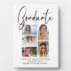 Élégant Script Multi Photo Graduate Outdoor Plaques and Signs présente cinq de vos photos préférées de votre diplôme d'études supérieures ou secondaires avec le script tourbillonnant moderne de calligraphie noire superposition "Graduate". Décor de fête de remise de diplômes simple, élégant et classe ou cadeau de remise de diplômes. Créé par ©Evco Studio www.zazzle.com/store/evcostudio