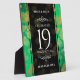 Faites du 19e anniversaire du mariage de jade une fête inoubliable avec cette plaque commémorative! Des lettres blanches élégantes avec des confettis hexagonaux dorés sur des arrière - plans élégants vert et noir de jade tacheté ajoutent une touche mémorable à cette occasion spéciale et à cette étape importante. Customiser avec les noms et dates du mariage du couple. Design © W.H. Sim. Voir plus sur zazzle.com/expressionsoccasions