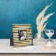 Elégante peinture personnalisée en feuille d'or noir rayée avec cadre carré de design de plaque modèle.