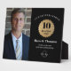 Celebrate a milestone moment with this modern custom employee recognition photo plaque, designed for honoring 10 Years of Service in style. Featuring a bold black background, faux-gold badge, personalized employee name, company logo, and an optional photo, this appreciation award is perfect for recognizing dedication, loyalty, and leadership.