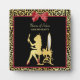 Plaque glamour salon de coiffure avec une femme portant une couronne d'or. L'arrière - plan est décorée d'un empreinte de léopard noir et or tendance et d'un arc rouge ceinturé. Impression plate Image, NON métallique ou arc réel.