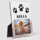 Empreinte de patte Pink Watercolor Chien Animal de compagnie Plaque photo. Le design a 3 empreintes de pattes noirs, une photo et un nom sur un arrière - plan tendance rose, beige aquarelle - ajoutez votre nom et votre nom.