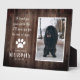 Ce panneau mémorial est le moyen idéal pour exprimer un souvenir d'un être cher à fourrure qui ne sera jamais oublié. Belle citation, empreinte de patte et votre propre photo. Peut être réalisé pour un chien, un chat ou tout autre animal de compagnie qui est parti mais pas oublié. Honorez la mémoire de vos êtres chers à fourrure avec un souvenir mémorial spécial personnalisé pour montrer qu'ils continuent à être spéciaux pour vous.
