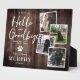 Cette plaque commémorative est le moyen idéal pour exprimer un souvenir d'un être cher à fourrure inoubliable. Belle citation, empreinte de patte et quatre de vos propres photos. Peut être réalisée pour un chien, un chat ou tout autre animal de compagnie qui est parti mais pas oublié. Honorez la mémoire de vos êtres chers à fourrure avec un mémorial spécial personnalisé pour montrer qu'ils restent spéciaux pour vous.