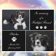 Hommage au chien commémoratif : Honore ton ami canin bien-aimé avec cette plaque d'exposition de photos commémoratives en mémoire de chien. Cet élégant hommage aux animaux de compagnie est imprimé dans des tons simples noir et blanc. Les modèles photo vous permettent de télécharger 2 photos de votre compagnon bien-aimé. Gardez notre sentiment qui dit En mémoire d'un ami fidèle, ou remplacez ces mots par votre propre bref hommage. Le design sobre mais élégant est agrémenté d'empreintes de pattes. Utilisez notre modèle pour créer votre photo hommage spécial à votre chien et partenaire fidèle. PERSONNALISEZ le sentiment, insérez le nom et la date de naissance de votre animal et la date de décès. Cette belle plaque de souvenir sera très bien exposée sur votre manteau, table d'arrivée, centre de divertissement ou bureau. Cette plaque photographique commémorative est également un moyen judicieux de montrer votre sympathie et d'envoyer des condoléances à un amoureux des chiens spécial.